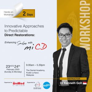 Date: 23-24 February 2025 Time : 9am – 5:30pm Venue: The Dental Academy, Kuala Lumpur, Malaysia Synopsis Meeting patient expectations while selecting the most suitable treatment option is a common challenge for clinicians. Minimally Invasive Cosmetic Dentistry (MiCD) emphasizes holistic, patient-centric care, prioritizing preservation of sound tooth structure alongside optimal aesthetic and functional outcomes. This […]