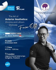 Date: 16 Oct 2025 Lecture: 8:45-9:45hrs Venue: Laguna Grand Hotel & Spa Songkhla, Thailand Synopsis Digital in a powerful tool. Rapid adoption of digital workflow in dentistry has been a subject of debate and even worry. The notion that analog techniques that have been used for decades to create aesthetic restorations, may soon become irrelevant […]